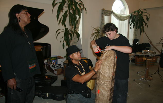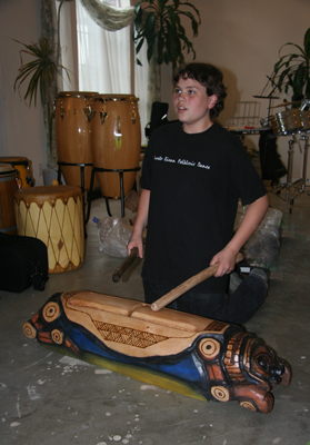 our Director's young son unwraps his Mayohuacan! He was born to play percussion. Today he is one happy young guy!