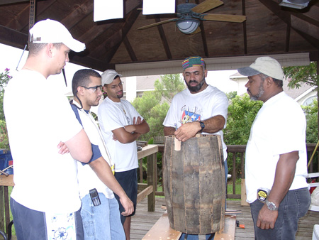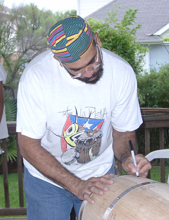 Signing the first authentic Bomba drum built in Austin before...