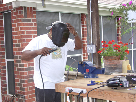 Creating the metal rim that will hold the "cuero" (drum skin)