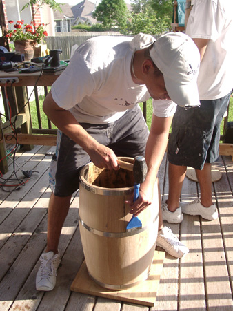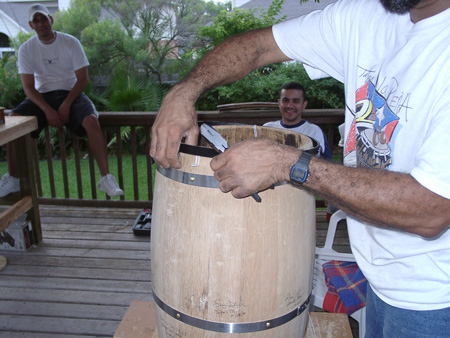 Removing the braces and hoping the barril doesn't fall apart!